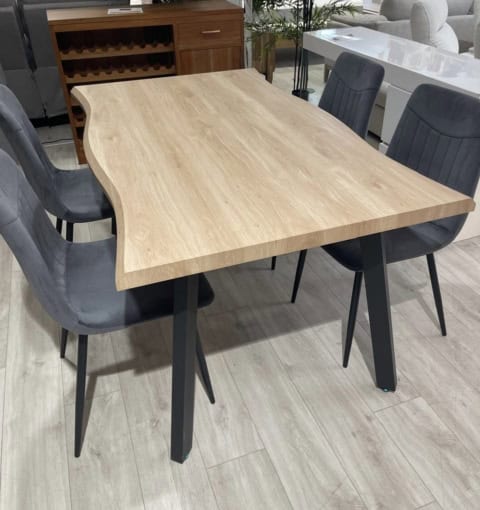 Table repas 140×80 cm plateau décor bois pieds métal noir