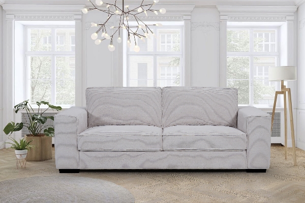 Canapé droit 3 places tissu côtelé gris clair moderne