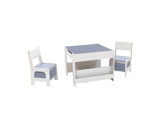 Chaque chaise dispose d’un tiroir sous l’assise pour ranger crayons, feuilles ou petits jouets, tandis que la table intègre un espace de rangement sous le plateau afin de garder la surface dégagée et organisée.