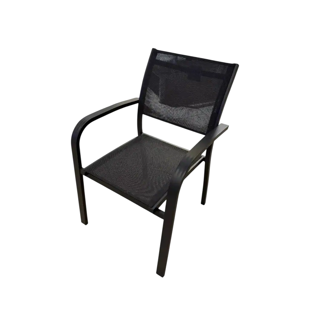 Ses lignes modernes, son dossier légèrement incliné et ses accoudoirs arrondis créent une silhouette épurée qui s’intègre facilement autour d’une table de jardin.